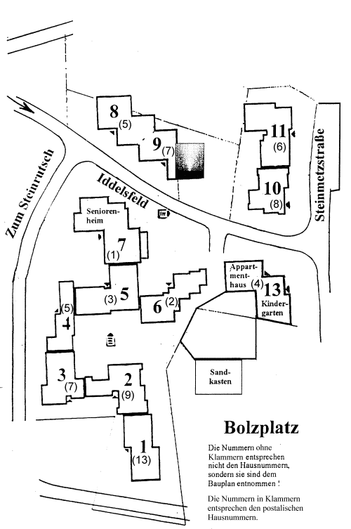 Die insgesamt 11 Häuser mit 200 Wohn- und 23 Teileigentumseinheiten - verteilen sich auf die Straßen „Zum Steinrutsch“, „Iddelsfeld“ sowie „Steinmetzstraße“ – und zeichnen sich nicht zuletzt dadurch aus, dass hier kein Durchgangsverkehr herrscht, sondern alle Straßen in Sackgassen münden.